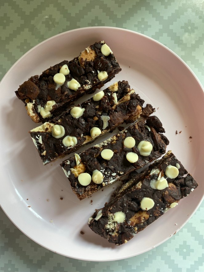 Now, this isn’t exactly a pretty cake but the combination of chocolate, biscuit, dried fruit and even cereals is absolutely delicious with a cup of tea in the afternoon – or evening after the kids have finally gone to bed! And the fact that it’s a no bake cake makes it even more of a winner.
